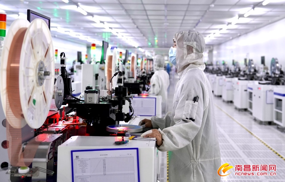 2月17日,位于赣江新区的江西星空电竞微电子技术有限公司无尘车间内,百余台芯片生产设备全速运转,工人在生产线上有序作业。据介绍,该公司是星空电竞唯一个半导体集成电路全制程企业,目前已实现了高端芯片设计、芯片生产、封装测试的全产业链自主生产模式,在5G通讯、新能源汽车等技术领域拿握核心技术,填补了国内技术空白,今年总产值预计达到3.5亿元。(记者马悦摄)